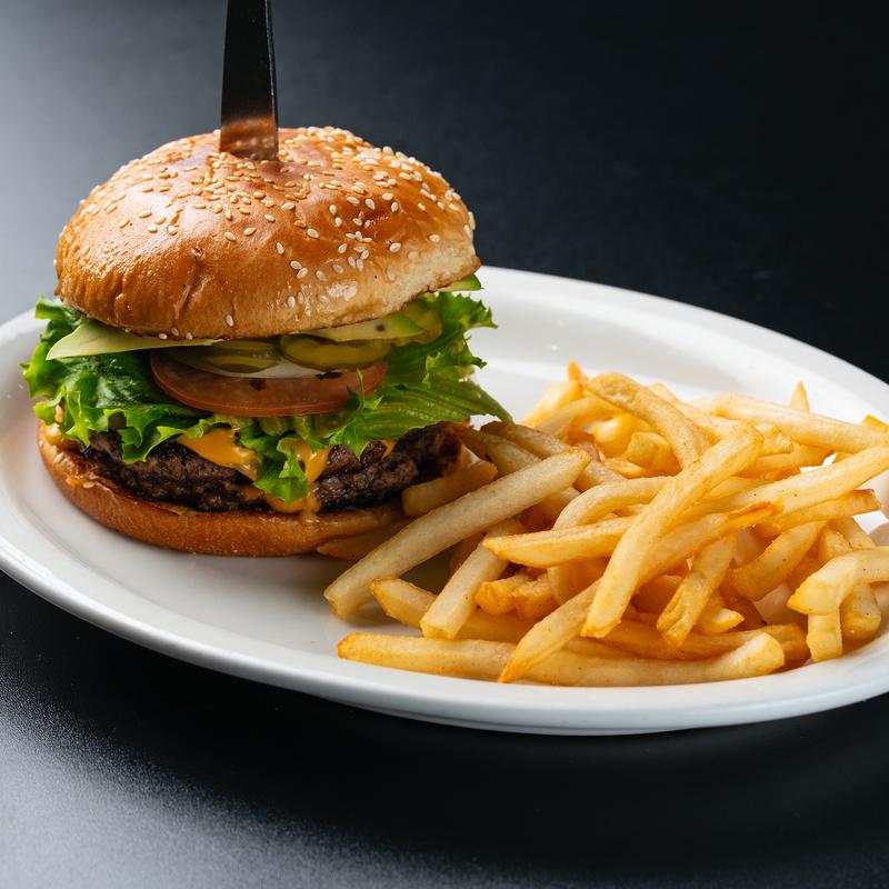 (Choice of meat) with lettuce, tomato, onion, pickles, avocado, jalapeño & fries