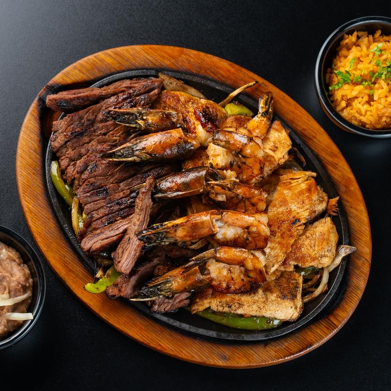 For 1 $21.99 | For 2 $34.99 • All our parrilladas accompained with rice, charro beans choice of arrachera, chicken, shrimp, tablitas lloronas or mixed meats | Only shrimp add $4.99